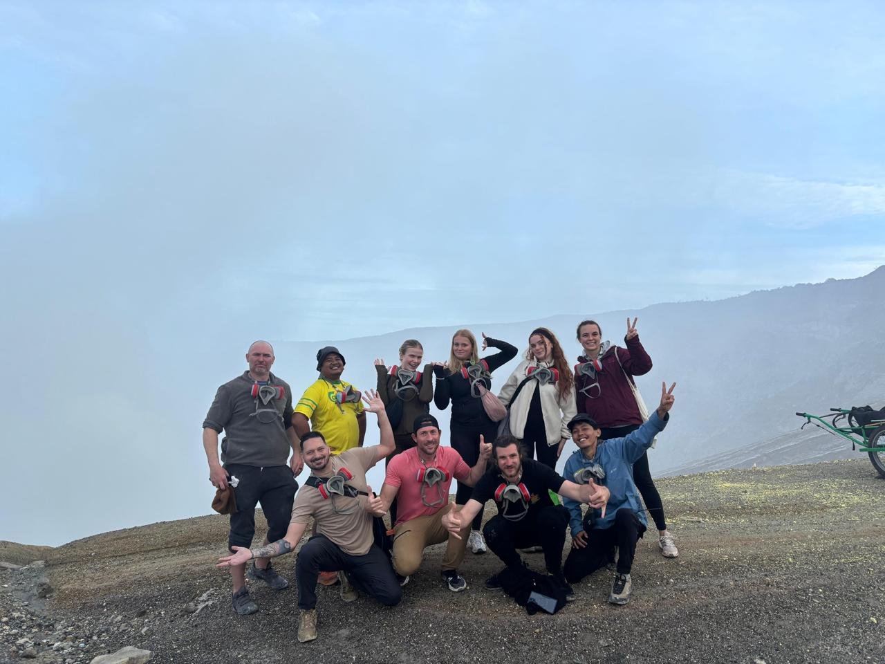 • Gas Mask, flashlight in Ijen, medical letter.