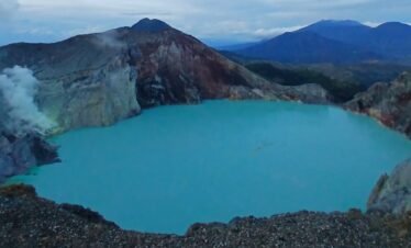 • Turquoise crater lake view in Ijen.