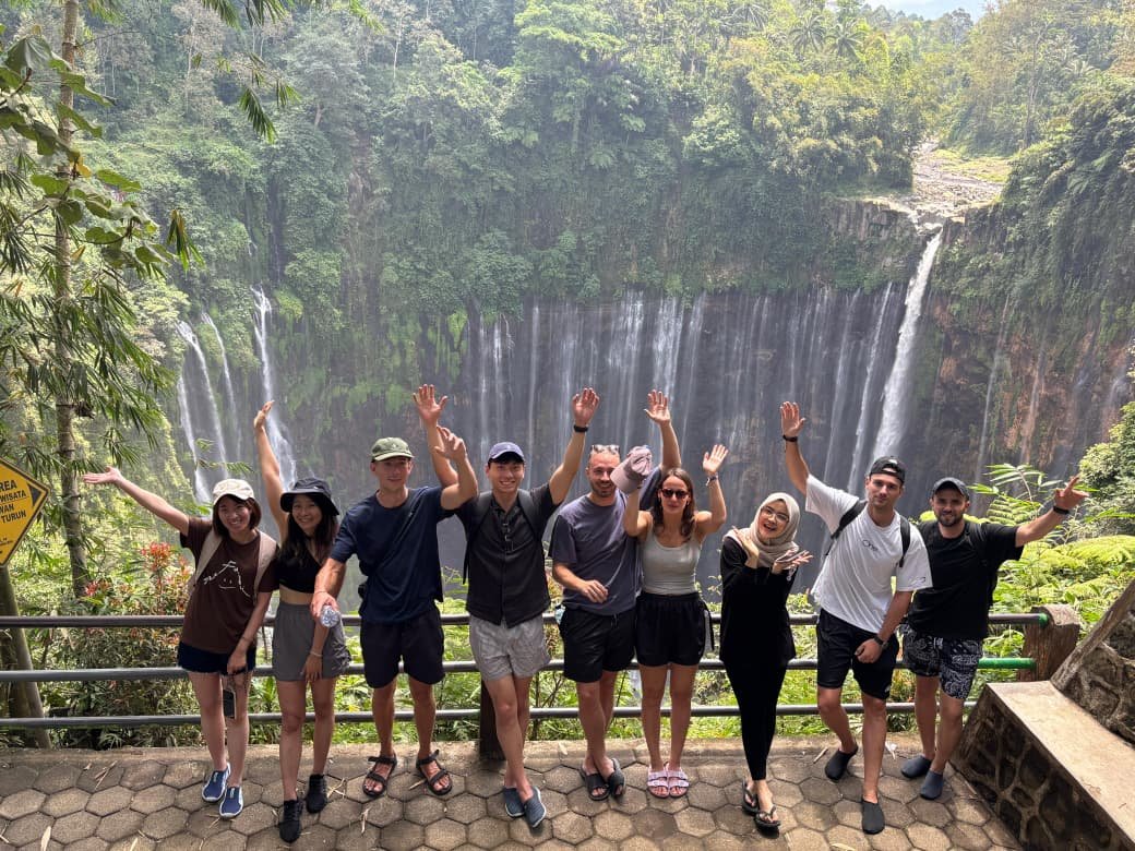 🌊 Tumpak Sewu Trekking | 10:00 AM: Arrive at the "Niagara of Indonesia." Trek from the panoramic viewpoint down to the canyon floor with our expert guide (approx. 3 hours).